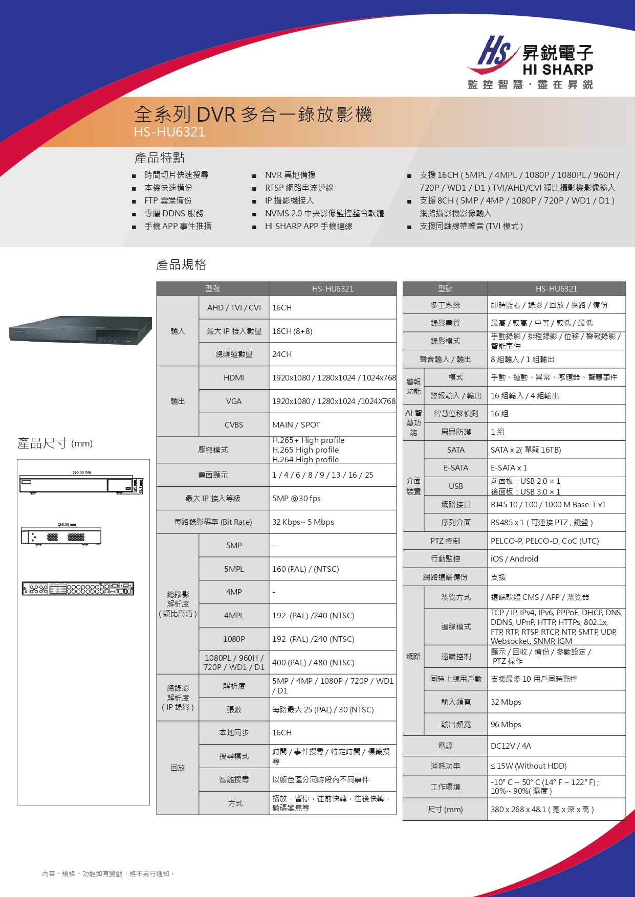 昇銳HS-HU6321多合一錄放影機