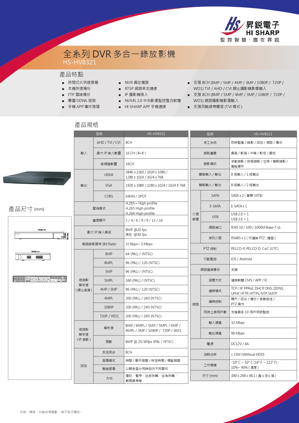 昇銳HS-HV8321多合一錄放影機