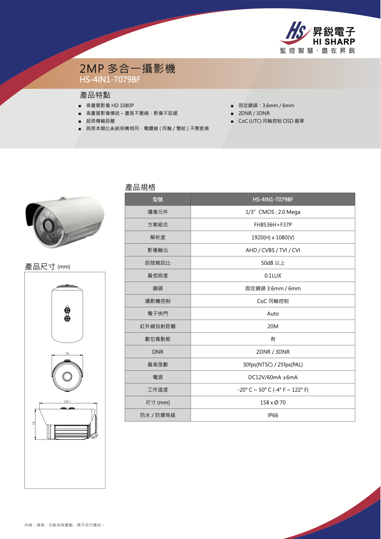 HS-4IN1-T079BF 昇銳 2MP 槍型攝影機